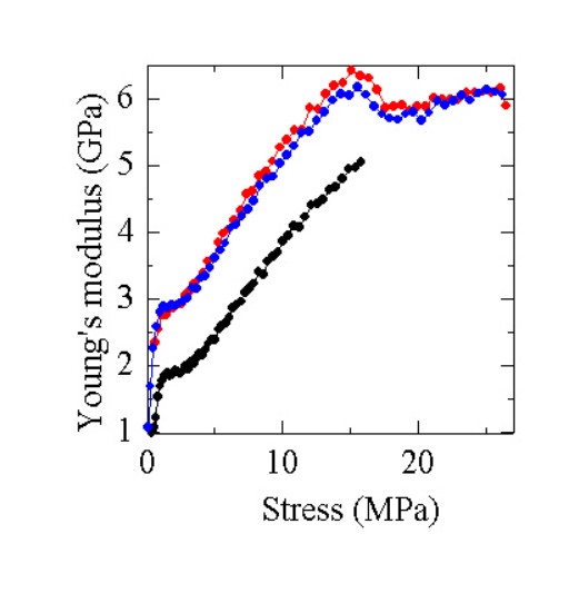 岩石供試体を圧縮時の接線ヤング率の変化挙動から岩盤応力を推定する方法を開発しました。現在、種々の条件の影響について検討しながら岩石が応力を覚え、忘れていくメカニズムについて考察しています。