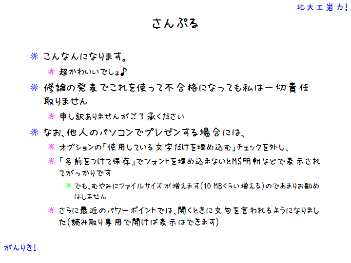 さなフォン丸Pをインストールしたパソコンでこれを使えばあなたのパワポもたちどころに岩力仕様(トナー節約型という意味)の上品なパワポに大変身です。