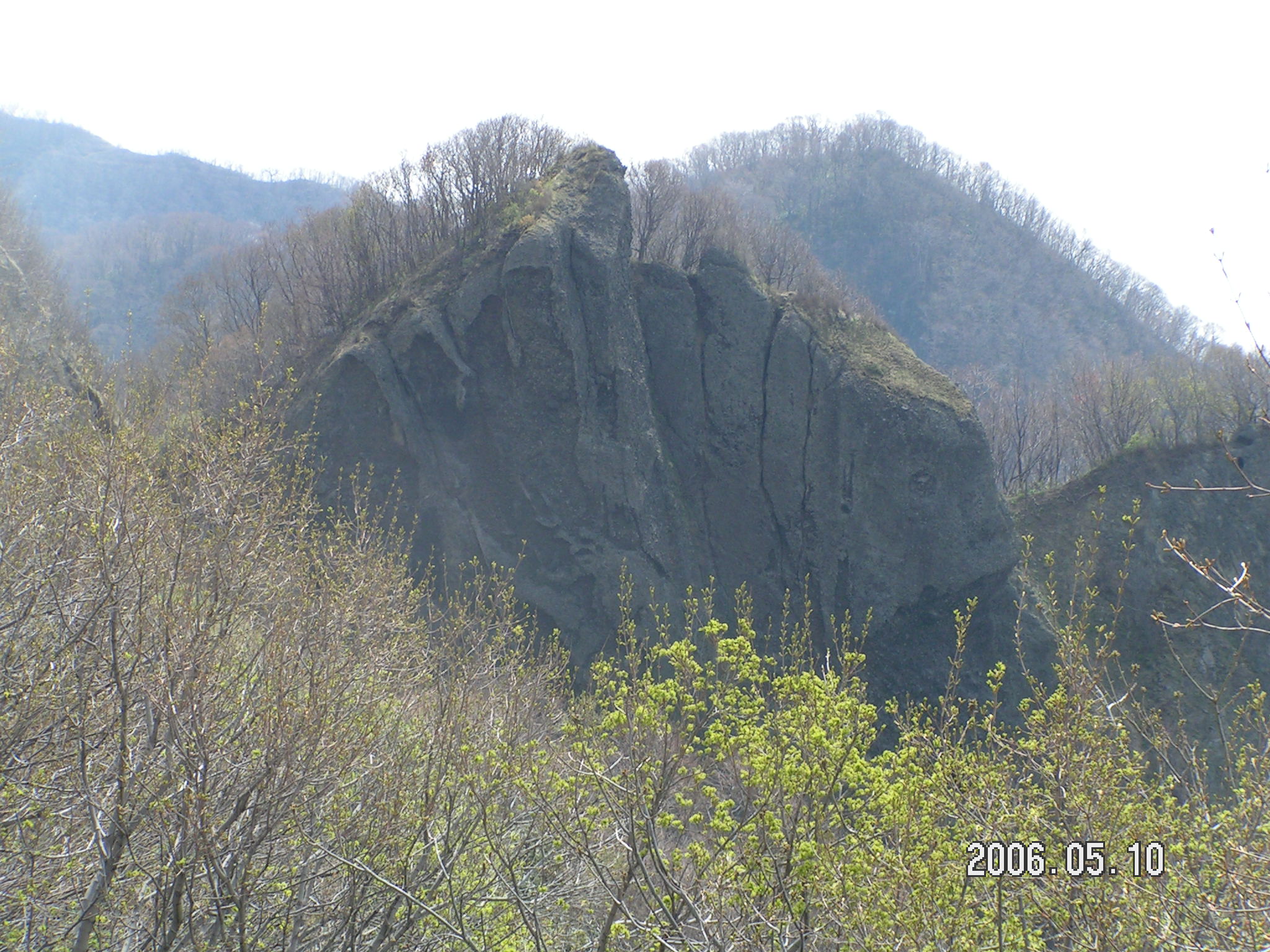 濃昼(ごきびる)トンネル送毛側出口からみられる魚山(さかなやま)です。児玉先生の助力を得て私が勝手に命名しました。「ごきびるのさかなやま」いい響きです。 冷却収縮? 氷結圧? 凍結融解? 乾燥収縮?