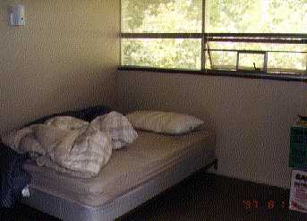 寝室 朝早く行って学校から恵理子に電話する。元気なようだ。車を借りてもらう。赤いカムリだ。絶対に事故ってはならない。Mazenに運転してもらってWal Mart(ホーマック的な店)で買い物をして、Home land(食料品店)の場所を教えてもらった。本当に面倒をかけてすまないと思う。20:00に寝る。昼飯はまずい中華の食い放題を食った。$3.96だ。安いがまずい。Mazenに破壊靭性値とはなんだ?と聞かれた。びっくりした。なんて奴だ。それだけ細分化しているということか? 8:00まで寝てしまった。コインランドリーで洗濯をする。この辺では唯一の公衆電話も一台ある。乾燥機はなかなかだが、45分もかかるのは困る。両方とも75セント。両替機もある。Fashion mallで買い物をする。おみやげはここか?Wal Martでも買い物をする。掃除機がえらく安かった($24.99)が大丈夫だろうか?