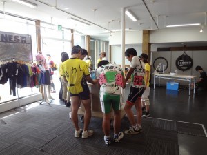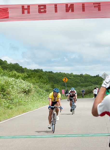 2013, 8/4ニセコヒルクライム 6時発、18条で鈴木君・菅原君を乗せて6時30分発、8時20分着。まあこんなもんだろう。 前半は向かい風のため集団の速度が遅く、割と楽に6 kmくらいまで憑い ていき、無理せず千切れてみた。結構抜かされた。27 tがあったので普段は24 tを使い、一番急なところでもダンシングをせずに走れてエネルギー的には悪くない感じであった。予定通り鈴木君に抜かされ、ボブに抜かれて抜き返し、おばちゃんの、「これが最後ののぼりだよ」という嘘にうそと知りつつだまされてよけいつらくなったり、全開のジャージで乳首が見えているのを爆笑されたりしながら、鈴木君を抜き返せずゴール。