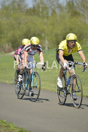 2014, 5/11 道新杯。 5時起床、6時20分発、新しい道で1時間で着く。毎年のことだが早すぎるくら いのはずなのに、すでに自転車オヤジの車で駐車場は大混雑。 なんと奇跡的に小玉さんがMで優勝した(怒られるか?)。少なくとも見てる範囲ではほとんど先頭集団最後尾で、1秒たりとも先頭を牽いてる様子はなかったが、とにかくおめでとうございます! S3、7/35/63。中切れ処理などでときどき頑張るところもあったが全 体的には楽勝で、先頭集団最後尾からスプリントしたが、前が詰まって10秒以上 スプリントできず7 位。待たされなければ5位くらいはいけた。ペース 的には楽勝だが、落車せずにゴール出来たのは奇跡的。いきなりスタートで横の オヤジが落車したし、それ以降も前後左右で落車だらけ。橋本速い方の娘によれ ば今年は速かったらしいので、シロッコ+レコードが効いたということだろう か。三浦君5位。まだ少し動きが悪い。あの脚力なら優勝してもおかしくない。石山君12位。石山君も走力的には5位くらい入ってもおかしくないが、まだ少しレースに慣れてない。でも、昨年はちぎれていたからだいぶ進歩した。もう一息だ。