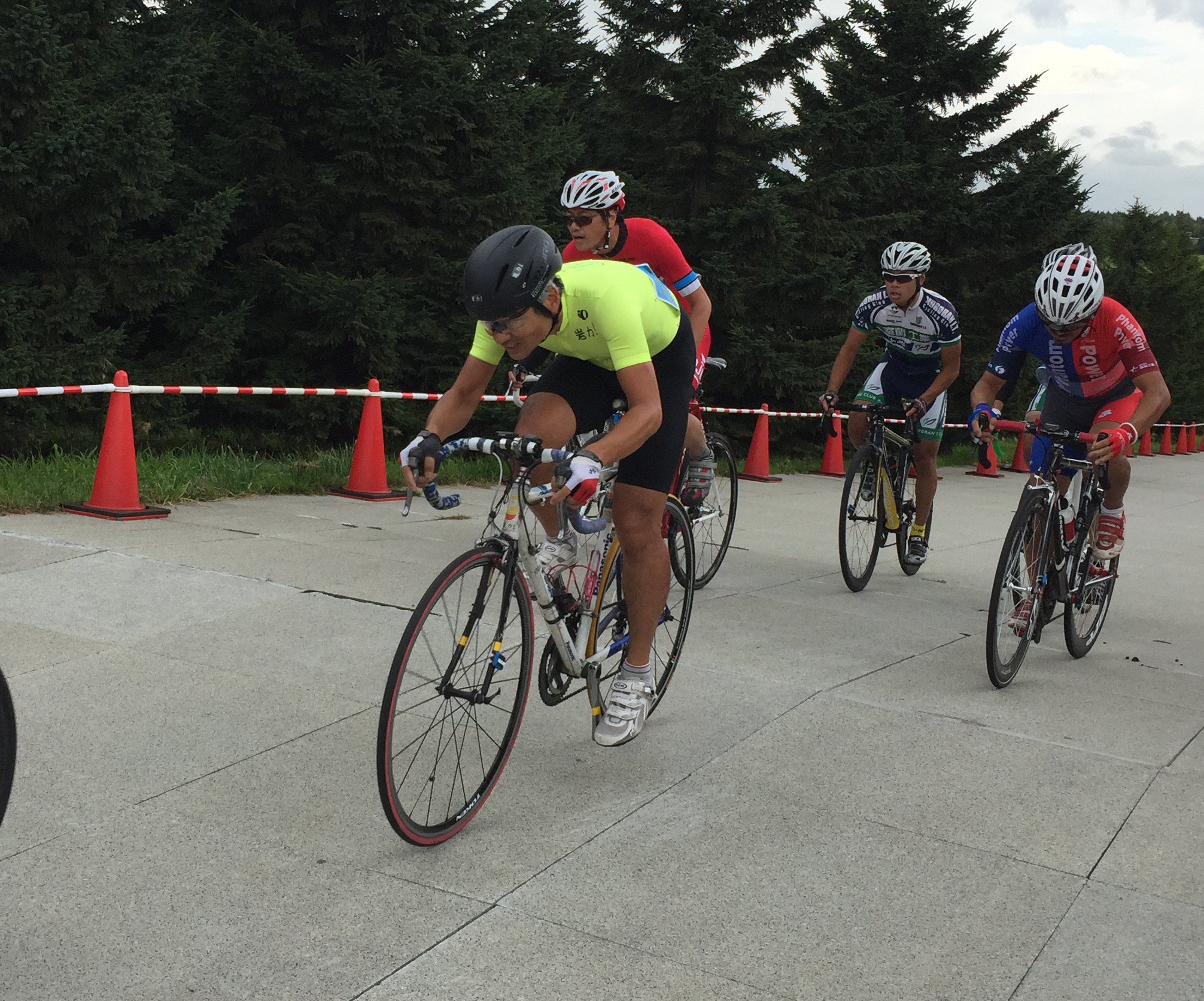 変態だな、こいつ。自転車っていうより、陸軍突撃部隊って感じだ。(撮影;白岩先生) 最終周回も第1コーナー先頭で突っ込み、抜かしてもらおうと思ってゆっくり走るんだけど、みんな牽制状態で、ツールに引き続きバックストレートまで誰も替わってくれない。そのうちしびれを切らしてペースアップが始まって、5番手位でクランクへ。上りでも大して抜かれず、10位以内に入れるかもと思いながら、たぶん7番手位で一番危険なコーナーへ。 そこで、なんと、というか、まあ、よくあることで先頭付近で落車が発生し、ほとんど止まる状態になってしまった。落車はしなかったので、追走すべく馬鹿みたいに引き足したところでシューズが外れ、バランスをくずしてガードレールと左腕が左ずれ断層。サンオイルで摩擦が軽減されたのか、擦過傷さえなくてよかったものの、停止。シューズを嵌めなおして追走しても、もちろんもう遅い。 14/43/45。12ポイント。まあ、しょうがない。意味はないけど、エリート24位、S-2で11位、S-4で8位、S-5、M、Lで1位。 後からシューズを嵌めたり外したりしてみると確かにすごく緩い。でも、こんなにゆるかった記憶はないので、菅原君のきついのに嵌めた影響で緩くなったのかもとか思いながら、色々調査中。確かに買ったまんまで使ってはいるんだけど、クリートもそんなに減ってないし...まあ、単にバネしめればいいだけだとは思うんだけどね。 レース中にアモン君に何回か檄を飛ばしてしまった。「切れるな!」とか「ここで死ぬ気で踏め!」とか。うるさいジジイだと思ってるだろうけど、おかけで9位でゴールできて、よかったね。俺も先頭集団でスプリントしたかったわ。シューズが外れるとはねー..来年もS-2でよろしくね。檄飛ばすくらいの元気があればいいんだけど。 雨がひどくなりそうなのと体とマシンにもしかするとダメージがあるかもしれないのと、もしかするとクリートが変に摩耗しているのかとか思って市長杯はパス。実際、結構ひどいのが降ったけどすぐに晴れて、少し後悔。まあ、今年はいっぱい出たからいいや。 さあ、スキマラだ。今年こそ200位以内。 やっぱりペダルは単に調整不足なだけだったようだ。自分のが緩いと気がついた時点であわてて締めるのがおそらく正しい対応だったと思われる。そうすればスタートもゴールスプリントもうまくいったはずだ、反省。 白岩先生、応援ありがとうございました。手を振る余裕はなかったです。S-2で待ってます。 |