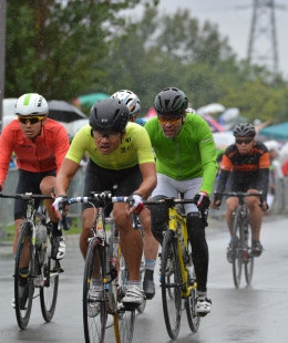 2015, 9/13 ツールクリテリウム エアアタック、ワンピース、C22A、プロ4、GP4000、当然ラテックス。 0500起床、珈琲きゃろっとを飲み、犬の散歩をし、珈琲きゃろっとをまたもや飲み、納豆玉子ご飯を食い、右のハムストが時々うめいてしまうくらい痛く、クレアルカリンの飲みすぎのせいなような気もするも確信がなく、とりあえず標準量、オメガ3とユビキノールはダブルで流し込み、0630発、セブンでおにぎりを買い、0645頃着。 雨天を考慮して7気圧にセットし、受付、検車。検車でメットの内装をチェックされた。劣化のチェックと言ってた。まあ、たしかに古いメットは危ないかもしれないけど、スポンサーの意向かね。質量は8.3 kgだった。ちょっとがんばったら7 kg台になるぞ。軽いとは言えんが、見た目ほど重くないんだから、買え買えって言わんでちょ。ものを大事に使う性格だし、アルミと違ってチタンとカーボンは一生使えるってドーピングキングの本に書いてあったし。この、アルミは疲労するけど、チタンは疲労しないってのはわからない...から後で調べるか。 チップをつけ、ナンバープレートを付け、ワンピースにゼッケンを取り付け、変態のように車の中で生まれたままの姿になって苦労して着用し、出走くらいには雨が上がるかもしれないと思って練習用シューズを履いて下見。おにぎりを食い、開会式。参加賞は井上のチューブだった。R501-30にはバルブがやや短いかもしれな いが、これは悪くないかも。もっといろんなものも欲しい(きっぱり)。 BCAAを飲み、アップ10 km。イオンの激安ゼリーを食い、BCAAをしつこく飲んで、決戦シューズに履き替え(結局シューズを2足ともぐちゃぐちゃにし、明日のライドを超不快確実にしてしまった)、スタートに並び、いつものように先頭を確保した。こういうときは、脱ぎやすい、ポンチョっぽいカッパを別に用意しておいた方がよさそうだ。生着替え用のバスタオルのスカートもあった方がいいな。これは別に晴れていてもそうだけど。 スタートしてしばらくは先頭から5番手以内位でたまに先頭を曳きながら走行していたが、だんだん疲労して少し下がって、コーナーで減速し、上りで抜かれ、ホームストレートで追いつき、これではいかんと思い、たまに先頭まで戻ったりして、まあ、とにかく先頭集団にはいた。あー、一人逃げていて、結局その人優勝した。道外からで、S-3に出るような人間じゃないと思うが。