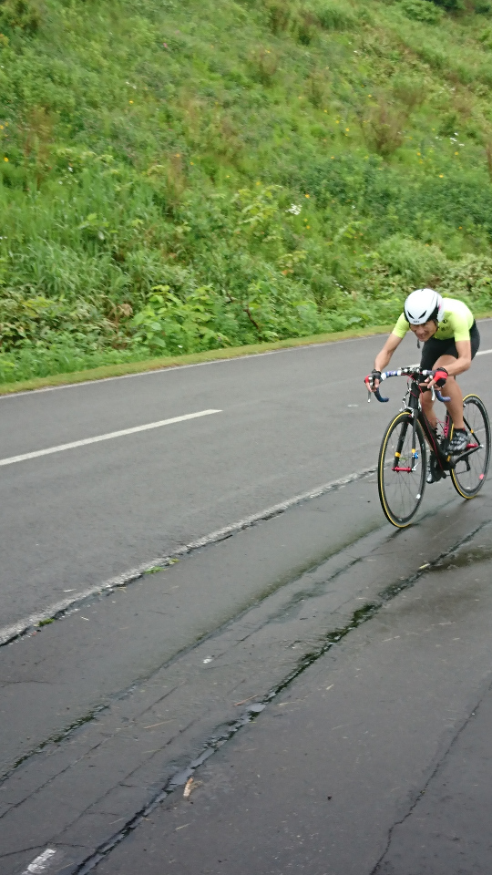 2017, 6/25 小平ヒルクライムタイムトライアル 62 kg、中華カーボン、CX (10 MPa)、12-28、スーパーレゲラ、ワンピース。 0500起床、キックアス2杯、納豆玉子ご飯、クレアチントリプル等。0620発、普通の道を走ってボロボロの片桐君を見ながら9時前に着。 ゲイナー、BCAA、シトルリンを流し込み下見がてらアップ。スタート地点からさらにアップ。 ブレーキをかけて立ち上がっておいて割とスムーズにスタートできた。予想に反してウル得マンさんに先行してしまった。抜かれて抜き返してコーナーでインに詰まってブレーキングしたが先行のままゴールできた。