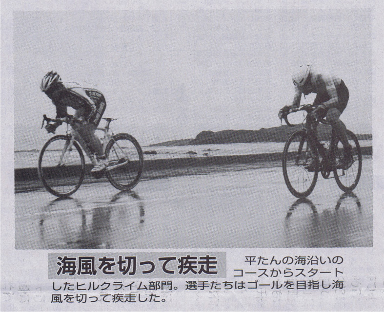 新聞の写真のデータをくれと言ったら販売サービスを紹介してくれた。待ってたらフェイスブックにに載った。何か胴体が短いような気がするな。背中丸めてるからだけなんだろうか? ゴールしてそのまま裏からスタート地点に戻り、ゲイナー等を入れ、ダウンか アップかよくわからないが、10 km流して、パジャマさんに15秒くらい、ひげもじゃ先生にも負けて32位でげんなりしながら、 二本目。今回はウル得マンさんに先行され、上りですぐに抜けるはずと思ったが全く抜けず、何とかゴール前で抜き返した。