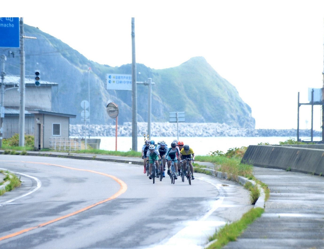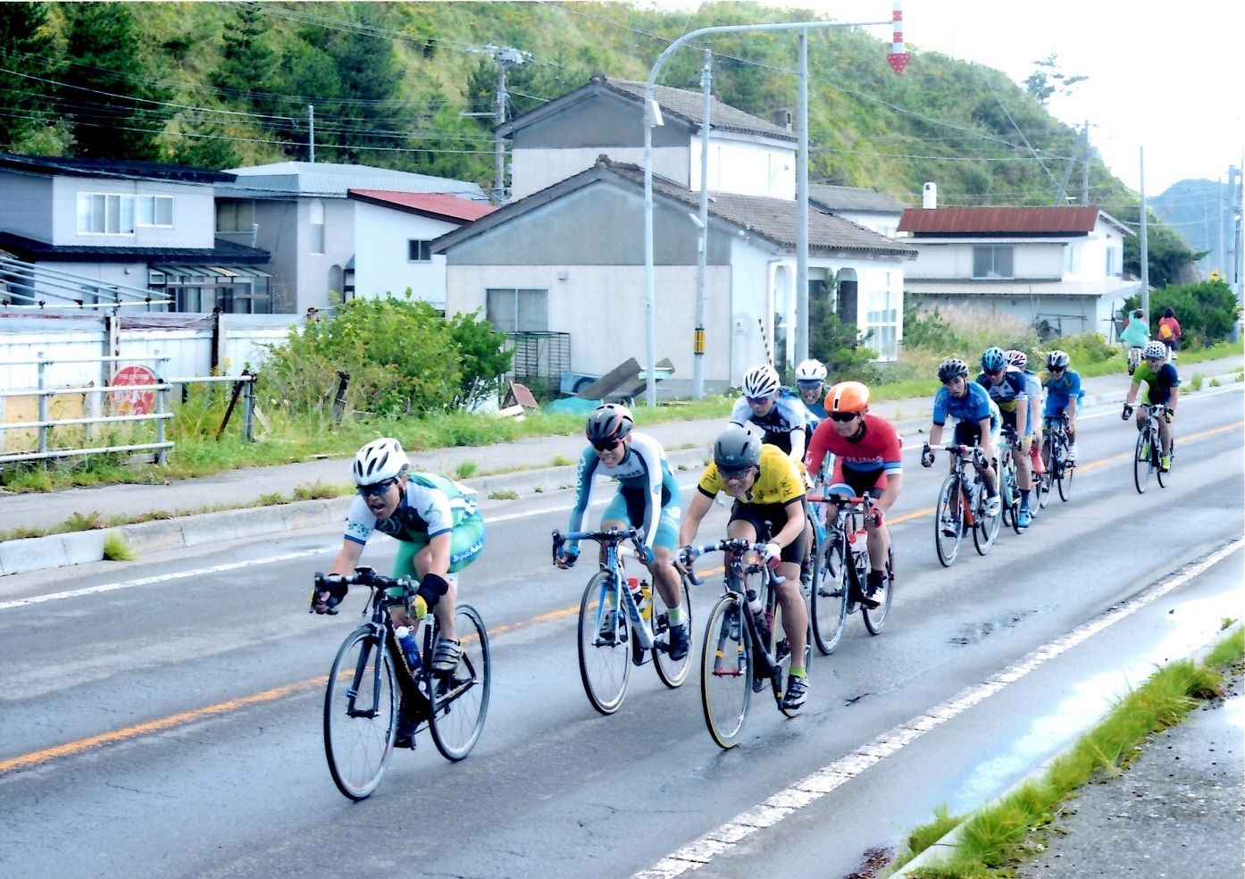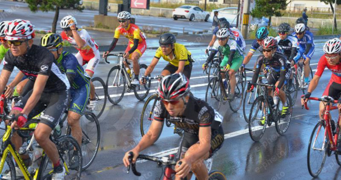 スタート直後のウオシュレット状態。 種村さんには下りで追いつき、平地は最終的に10人ほどの集団。トンネルで教育大に接触され何とか落車せず、信州大のやたら速い走者の次の順番で先頭を引く羽目になることが多く疲労困憊。予想通り最後の坂で置いて行かれ意外と長いゴールまでの2車線をヘロヘロ走り、血まみれの輪駄を見ながら地味にゴール。