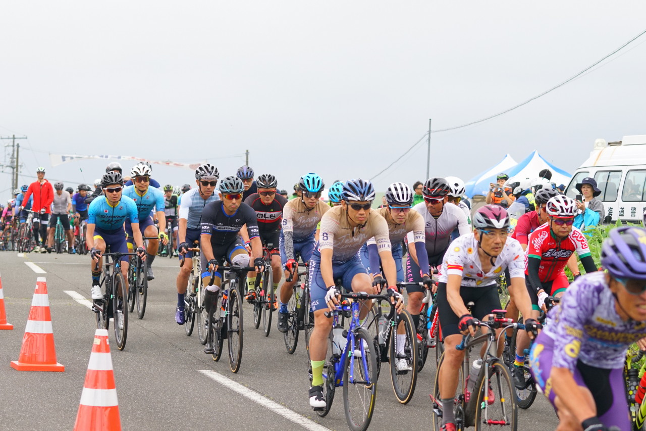 撮影:山下さんの妻 のだが、なんとかゴール近くまで集団で。中村君が前方に上がっていったのでよしよしと思い、自分もスプリントで何人か抜ければ...と思っていた矢先、左側で危ねえ、と怒声、それが右側に波及して前走者2人落車、急停止。 後ろから追突されるかと思ったら、だれもおらず(ハハ)、1人で必死に走り、空気も読まずに藤田さんを追い抜いてゴール。