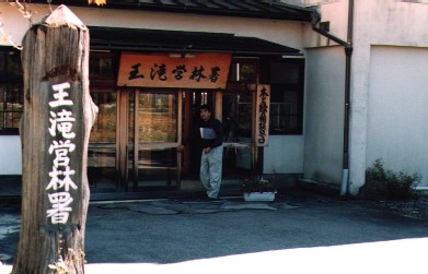 18日,名古屋経由で木曽福島に,ここでレンタカーを借りて ,まずはお仕事。ボーリング現場で採取されたコアを見る作業で,5時頃には終わ ってすっかり解放されました。さて,さっそく倉田邸を探しに王滝村に。それほど 大きな村ではありませんので,悪いけど私は勝手に,おばさんが一人電話番をして いる総勢5〜6人程度のささやかな営林署を想像しておりました。ところが,実際 に私の目の前に現れた営林署は,木造2F2棟つづきの立派な建物 で,64人の職員が勤める林野庁でも大所帯の大営林署。村の中では小学校の次に 大きな建物です。そして倉田君はその大署長というわけです。倉田邸は営林署のす ぐ裏にあり,木造平屋で,なかなかの風情です。家そのものは私が 札幌白石に居たとき住んでいた官舎と同じようなものなのですが,空気は澄み,と ても静か。