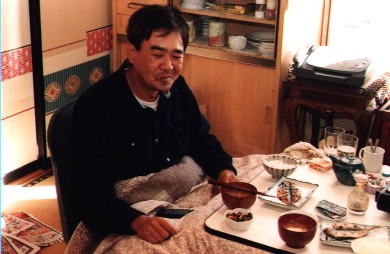 倉田に若干の変化があったとしたら,料理の腕前が上がっていたことでしょうか 。私の記憶では,学生時代,彼の料理はあまり記憶にないが,皆さんはどうでしょ うか。この日は,すき焼きでした。なんとか牛もうまかったけど,野菜類もO.K.。 うーむ。こう言っては失礼かとは思うけれど,長年独身をやってると料理も手慣れ たものになるのかも知れない。とくに倉田は高知,宇和島,王滝と自然の豊富な外 食産業などありそうもないところを渡って来たわけです。でも,本人はその辺の変 化はあまり気づいていないようでした。上の写真は19日の朝食で,みそ汁の 味もすっかりはまっていました。 倉田は心から営林署の仕事を愛しているようです。霞ヶ関で勤務するより,どこ か田舎の営林署あるいは海外の方が性にあっているとのことでした。でもいま,署 長なので,組合員から突き上げられ,その話を上に持っていくと,「そんな話持っ てきてもらっちゃ困る」とまた叱られ,板挟みで大変だそうですが,彼の性格のお かげで,多分和やかな雰囲気が保たれていることでしょう。ところで,世間では林 野庁は結構たたかれているそうで,木曽の300年ものの檜をつぎつぎ伐採し,そ れでも負債がどんどんたまっているとのこと。先日もフォーカスが取材に来て,親 切に案内してあげたのに,出版された雑誌には,「林野庁のバカ行政」とタイトル をつけられたそうです。NHKもきたけど残念ながら(?)放映はされなかったとか 。 だいぶ夜更かしして,次の朝,御嶽山の登山口まで行ってみました。たしかにこの自然の充実感は,都会がいかに 便利でも得られるものではありませんね。私も,こういう大自然のあるところで自 分のやりたい仕事ができるのなら,迷わず住みつくでしょうが,いかんせん,こう いうところには仕事がない。札幌ですら仕事がない。残念である。王滝村名物のド ングリコーヒーを飲み,今度上京したら,みんなで会おうと約束してきました。