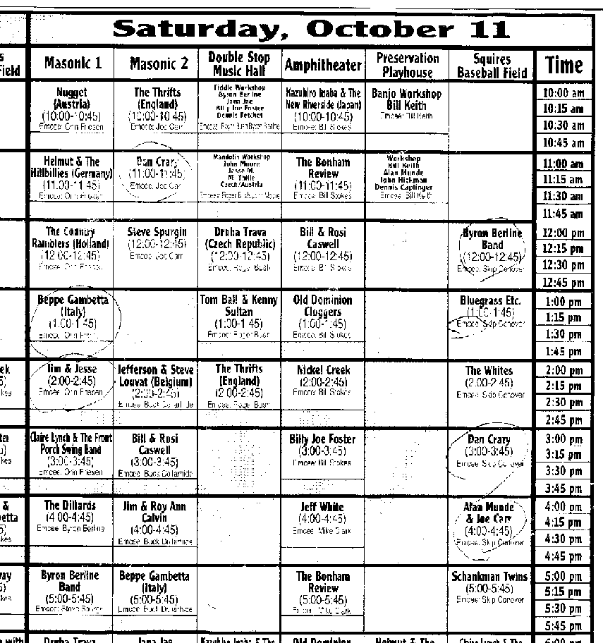 Bill Keithのバンジョーワークショップなんてのも見たかったし、いろいろ名残惜しかったが、雨もひどくなってきたし、寒いのでTwinsの途中で帰ることにする。できればプログラムを事前に配って欲しいものだ。そうすればこっちだって色々やりようがあるのだが。やっぱりそれは無理か。