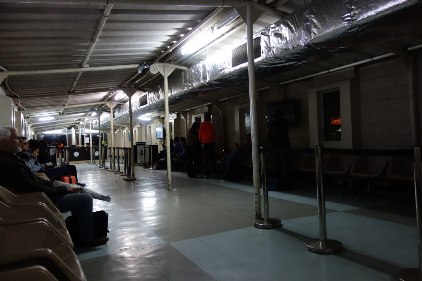 ゲートの店は現金のみとかで、ドルのおつりもクワチャとからしい。最終的な待合室もまるで近未来SFの最下層貧民のたまり場みたいだし、うーん、もう少し何とかならんかな。