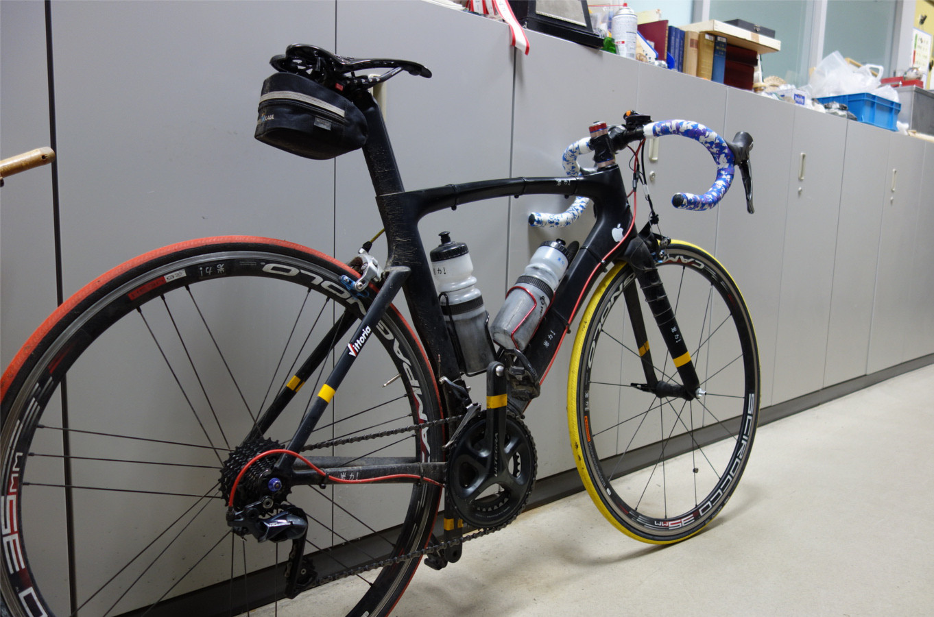 変なちゃり。 2018, 5/13 雨の予報のため、娘を送りがてら車で出勤して軽く仕事。道新杯は大変だね、こりゃ。 帰宅してタイヤとリムテープ交換。オド2600 km。リヤのチューブは新しいのでフロントに回した。ワコーズ注油。しないって決めたんだけど、気がついたら掃除しちゃってる。ま、いいか。 シュワルベのリムテープは弾力性と厚みがちょうどよく、ものすごく気に入っている。絶対に間違ってもミシュランとかシマノ(以上硬すぎ)とかビットリアとかパナレーサー(以上へにゃへにゃ)とか買わないように注意しよう。 ザフィーロを外すのは、面倒くさがらずに両方のビードを落とせば落とさないよりはそうとう簡単にできることに気がついた。で、いつもながら新品のザフィーロを履かせるのに難儀しそうになったが、まずビードを入れないでど真ん中に履かせ、その後、片方のビードを入れる、とするとそうしないよりは全然簡単に履かせることができることがわかった。 考えてみれば当たり前だが、バルブ周辺を最後にするとチューブを噛みづらい、なんてのも数年前に知ったし、56になっても知らんことだらけだな。知りたい人は連絡してね。めちゃ簡単。6気圧だとビードが上がらず8気圧にしたら上がっていたが、ケツの健康のためにわざわざ6気圧まで落としました。ケツ大事。 せめてものクローチングタバタもどき11回など。 若杉友子(2012)、これを食べれば医者はいらない、祥伝社 p. 134、右回転に混ぜたり、和えたりすれば、栄養が集まっておいしさが増す、左回転にすると、栄養もおいしさも逃げてしまう そんなことありえん。仮にあったとして、科学的に証明できたらノーベル賞確実だ。低気圧も左巻きでしょう?って、あんた、それコリオリの力だよ。 pp. 157-158、カリウム元素がナトリウム元素に原子転換していくのです。 40Kが40Caになるのはかまわないけど、39Kが23Naか?鉄より軽い安定同位体の自発核分裂だ!こんなもの発見したらもちろんノーベル賞確実。 読みたくないなら読むな?そうなんだけどさ、何が書いてあるのかなって興味本位で。著者が70過ぎで元気で老眼鏡もいらないのは事実なんだし...ド近眼か? 2018, 5/12 ワコーズ注油。100 gくらいのTNIのカーボン強化ナイロンメッシュ+カーボンレールサドル装着(標準幅、柔め)。このサドルはJENG HAOという会社で作ったものにTNIのロゴを印刷したものらしい。JENG HAOではたぶんスチールレールのを最小ロット50個で卸していた(価格不明だけどたぶんすごく安い)。アリエキスプレスで似たようなのを探して140 gくらいで4000円くらいのを見つけたので、今度はそれにしよう。 座面はほぼフラットなんで、自分的なセッティングだと極端な前上がり。押した感じではかなり柔いんだが、ちょこっと座った感じだと結構硬い。鉄板みたいなフルカーボンサドルよりはずうっとましだけど...いや、あれは痛かったわ。 なんでそんな(カーボンメッシュ)サドルにこだわっているかというと、超軽量なわりにバカ高くない、雨が浸みこまない、ケツが蒸れない、見た目が戦闘的で好み、などである。 で、壊れたときは取りあえず大人買いしてある400円のプラスティックメッシュサドルをつけてしのぐわけさ。これだって200 gくらいなんで、別にこれでもいいんだけどね。カラフルでかっこいいし。3000 kmで壊した実績があるけど。 明日乗れないと判断して、 ばんけい峠こばやし峠支笏湖方面オコタンペ分岐の少し先で折り返し、122 km, 21/67 km/h。 従前どおり路面が荒れた部分が多い上に、ときどき路側帯に砂丘が出現し、交通量も多いから危なくってしょうがない。どがんどがんいって、フレームやホイールがよく壊れないもんだと感心する。バニーホップすればそのうち老眼鏡を落とすんじゃないかと心配だし。 いやならそんなとこ行かないで、手稲山10本とか、ばんけい峠幌見峠20周回とか、固定ローラーでフロント上げて最大負荷とかやればいい。その通りだ。でも行っちゃうんだよね。 サドルの乗り心地は本家スパイダーとか中華スパイダーと同じ感じ。超軽量サドルに多くを期待するのは無理である。160 km走ってもケツの痛みがまあまあ我慢できる程度で、出血したりできものができたりして次の日に痛みを持ち越さなければそれでよい。もう少し前を上げるともっといいかも。 座面の関係で今までは後ろから1/4くらいの位置にピンポイントで座っていたためハンドルが遠くてつらかった腰が、中央に座ることができるようになったので少し楽になったかも。 2018, 5/10 クリストファー・チャブリス、ダニエル・シモンズ(2011)、錯覚の科学、文芸春秋 いろんなことがあって凄く時間がかかったけど読了。イグノーベル賞だそうだ。納得するところもあるけれど、著者自身が逆の錯覚にとらわれているのではと思う個所もあったりする。個人的には、コレステロールを食うと血中コレステロールが増えるとか、脂肪を食うと太るとか、あたりの錯覚を取り上げてほしかったな。